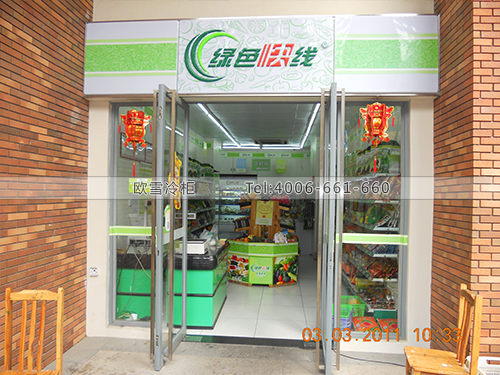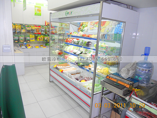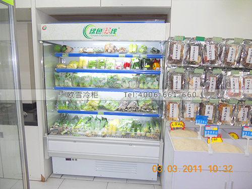 案例名稱:B027東莞寮步高爾夫花園綠色快線水果保鮮柜-蔬菜保鮮用冰箱-鮮肉保鮮冷藏柜